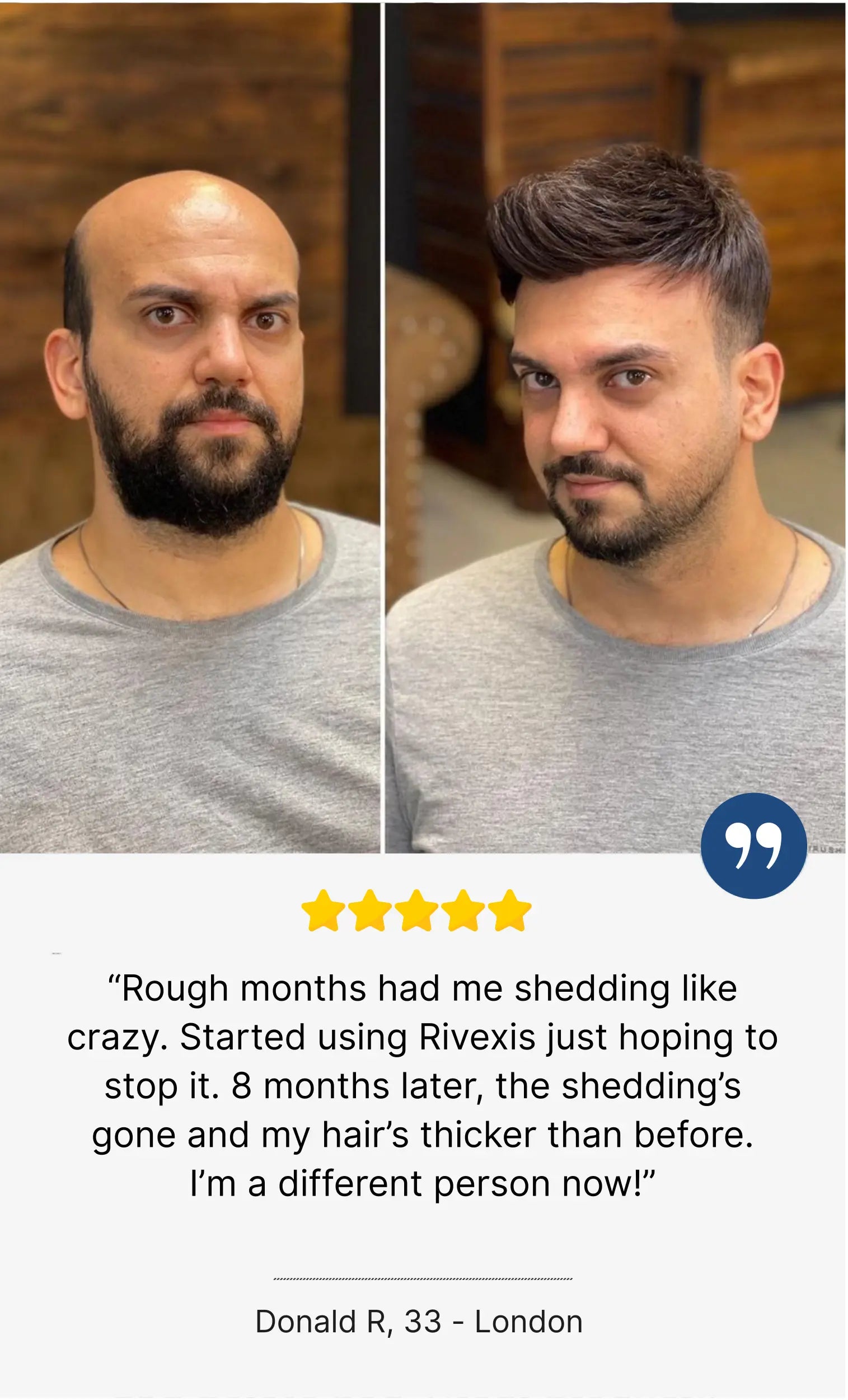 Rivexis™ is built on 35 years of clinical expertise — using scientifically proven ingredients that actually reactivate sleeping follicles, deliver visible growth in as little as 30 days, and skip the greasy, gimmicky formulas other brands rely on.